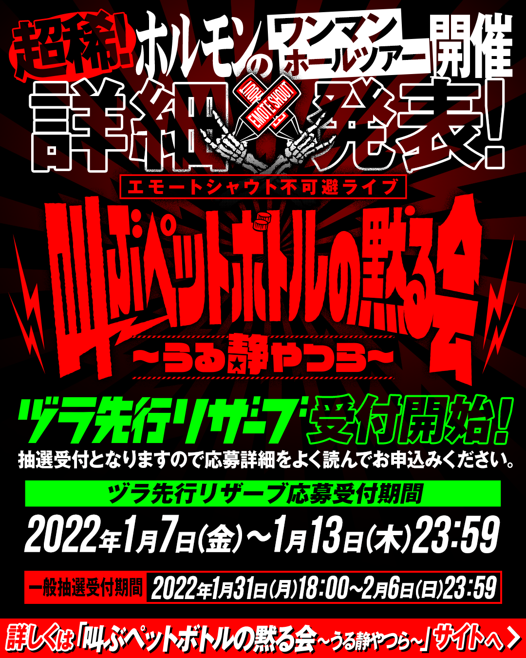 先日告知された“叫ぶペットボトルの黙る会~うる静やつら~”の詳細がついに発表。