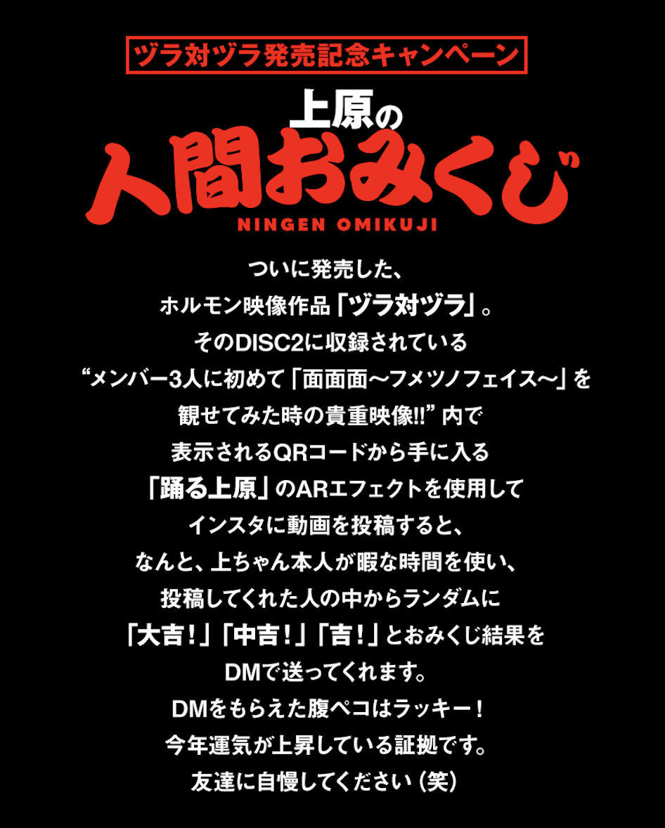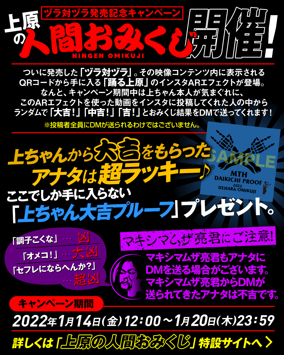 #ヅラ対ヅラ 発売を記念して本日1/14(金)12:00 より“上原の人間おみくじ”開催!