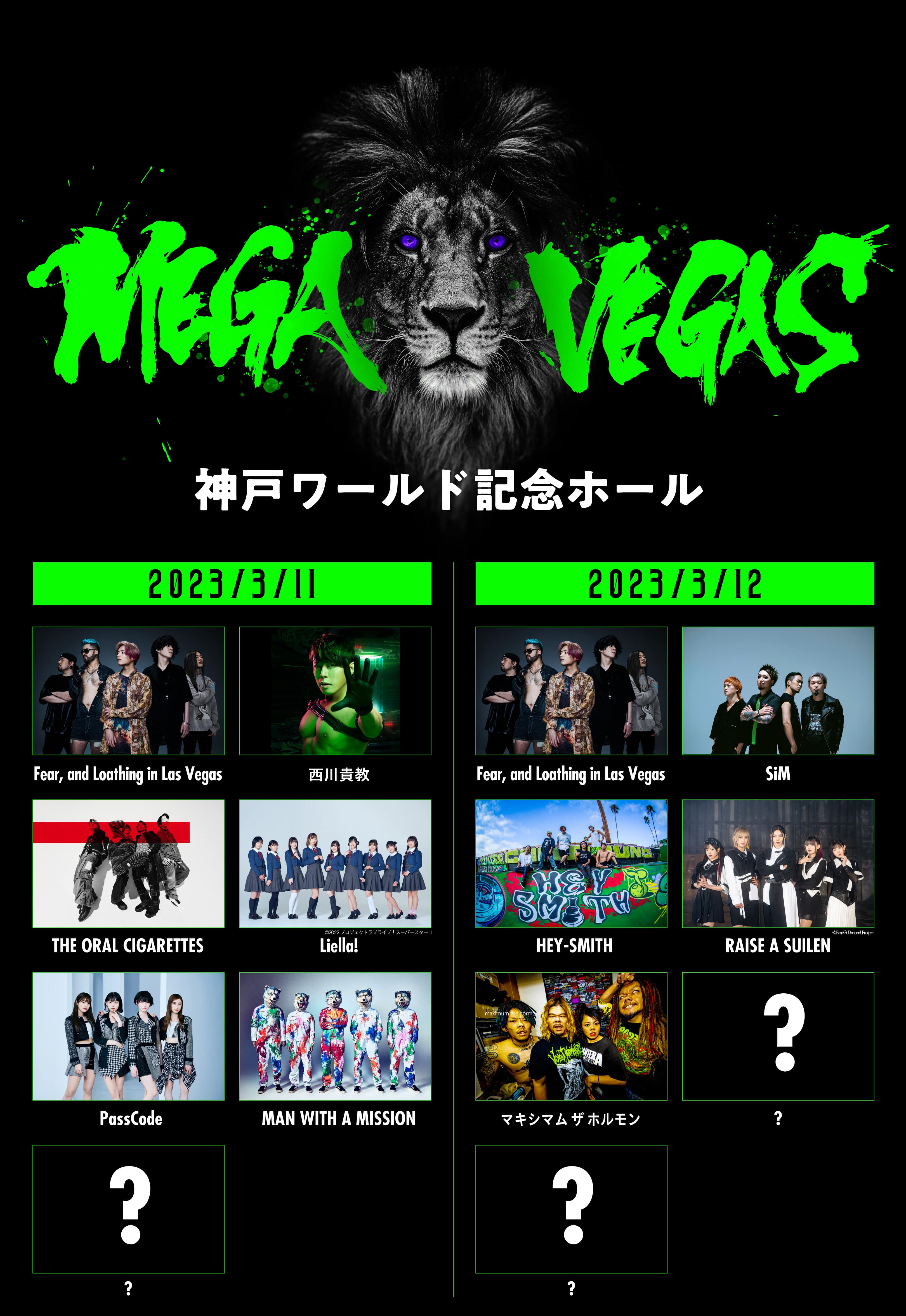 2023年3月11日(土)、12日(日)に神戸ワールド記念ホールにて6年ぶりに開催されるFear, and Loathing in Las Vegas主催フェス「MEGA VEGAS」にホルモンの出演が決定!