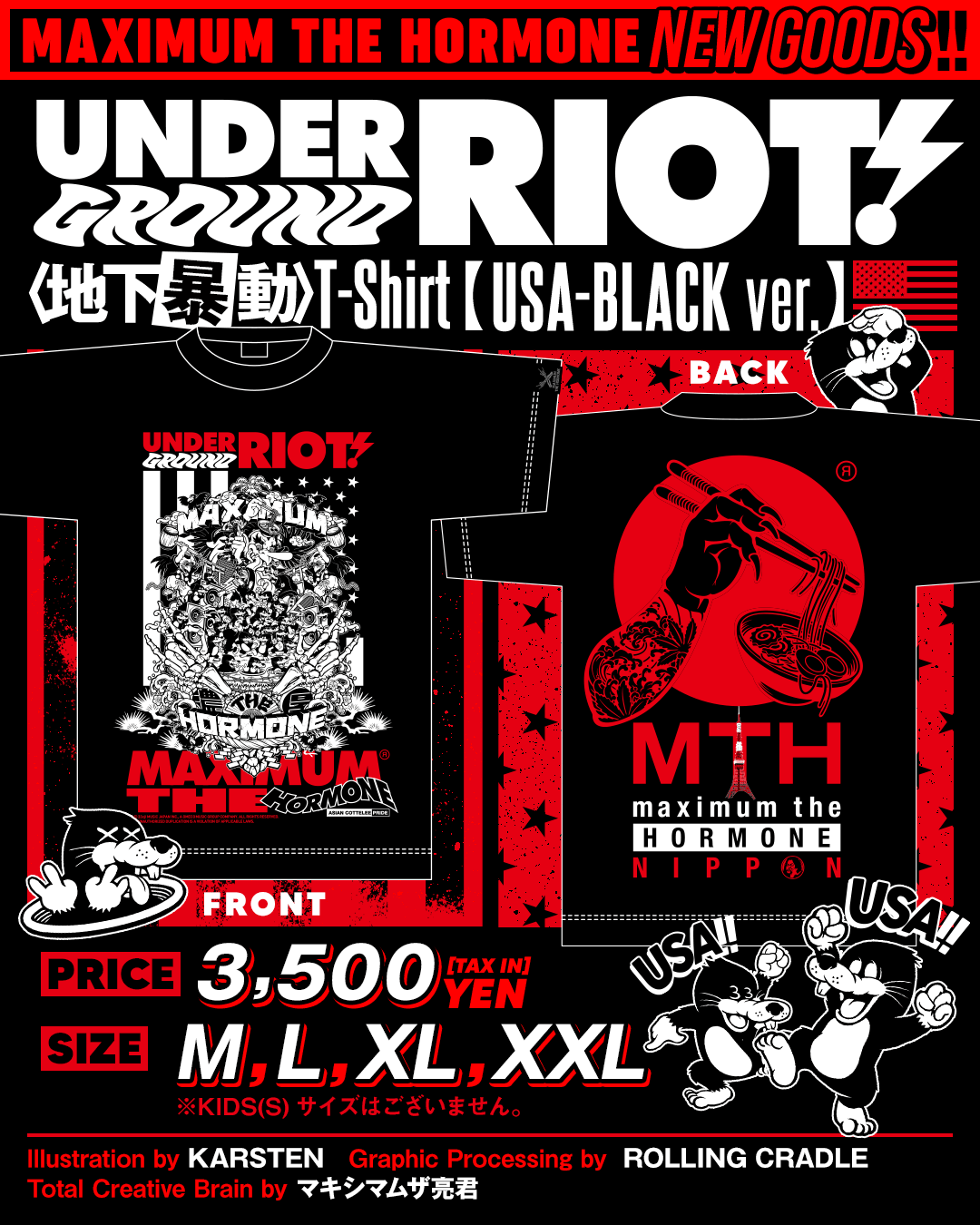 今年の夏フェスで販売していた『Under Ground Riot T-shirt【USA-WHITE ver.】』のBLACK ver.が登場!