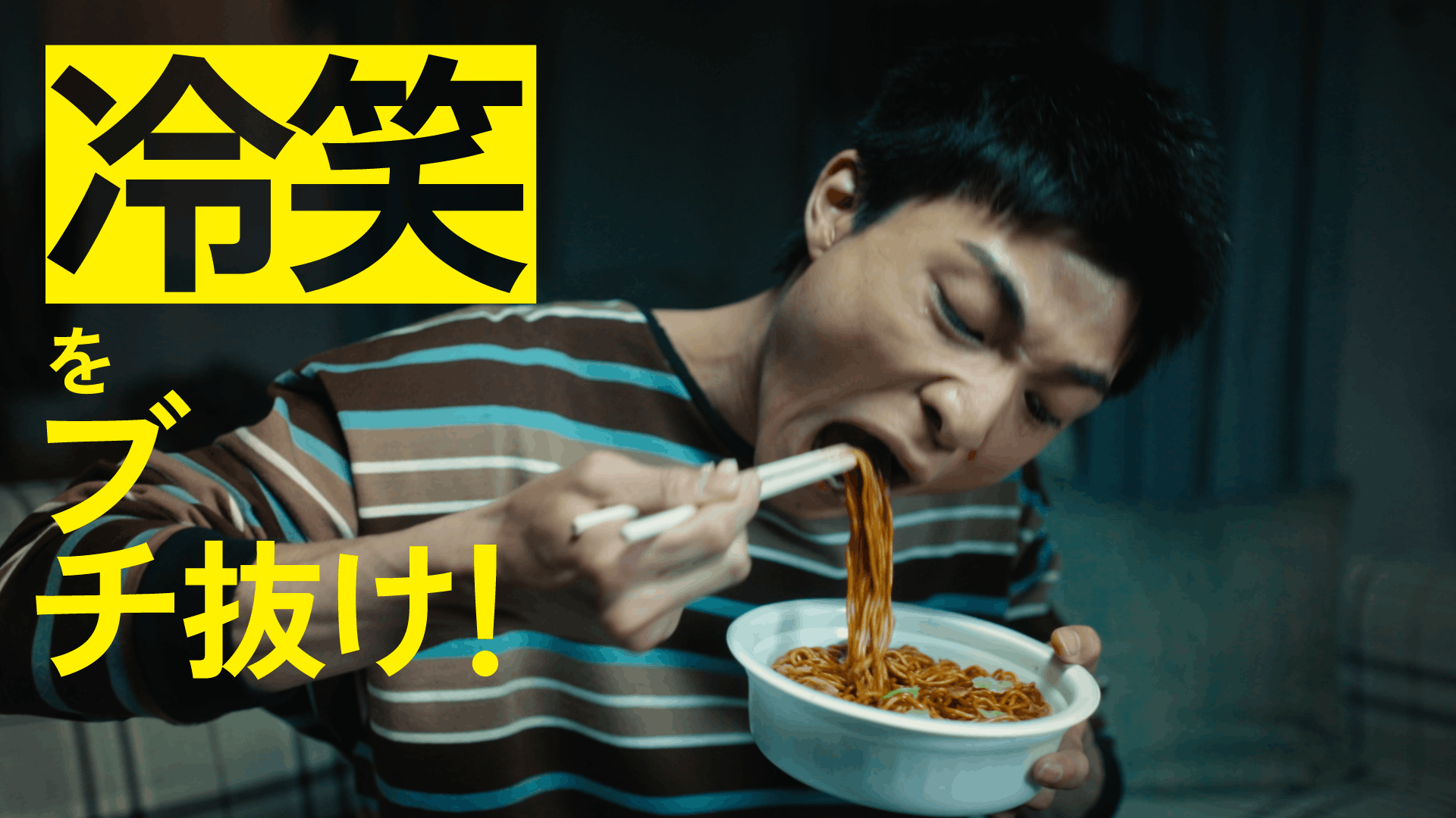 日清焼そばU.F.O.の新CM「夜をブチ抜く大学生 篇」にて
