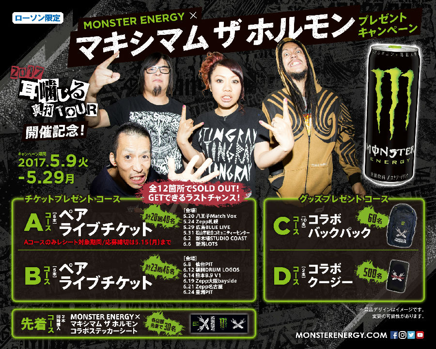 【“モンスターエナジー×マキシマム ザ ホルモン”プレゼントキャンペーン】 2017年5月9日(火)~5月29日(月) |