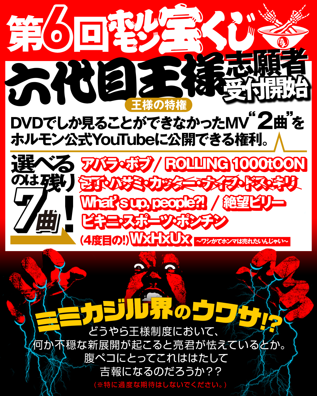 動画ラストでは王様がホルモンライブにご訪問された様子も。