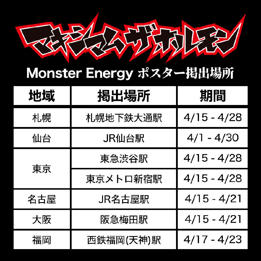 全国5都市の駅構内に掲出されるMonster Energyの広告に今年もホルモンが登場します!