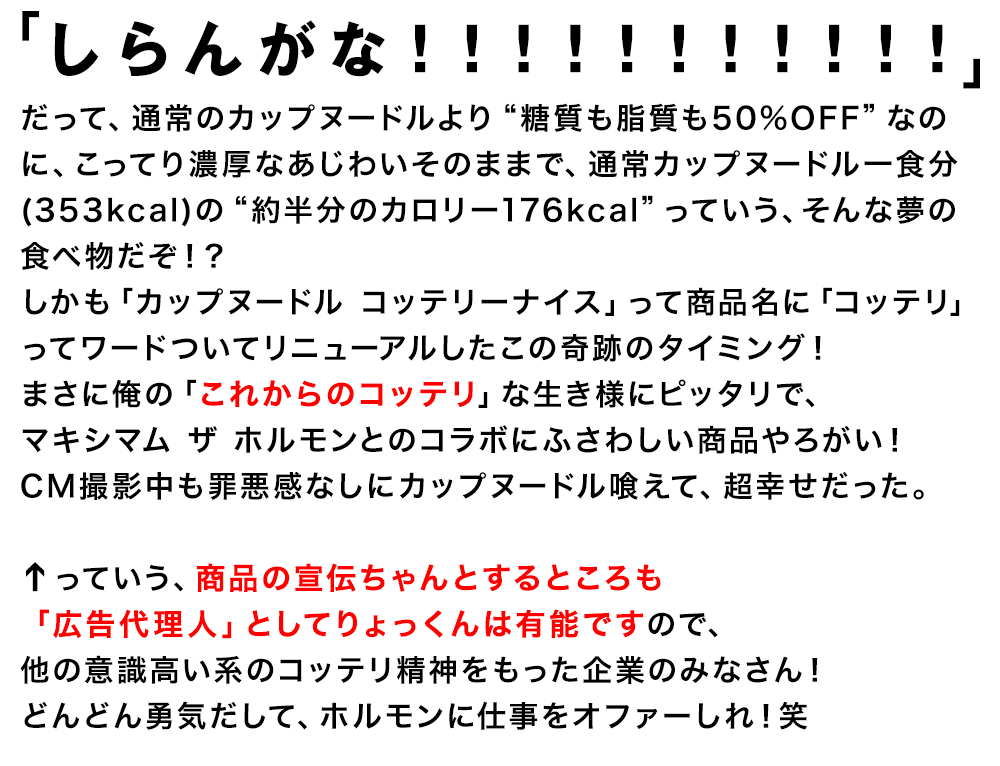 マキシマムザ亮君が日清食品“カップヌードル コッテリーナイス”の「アウトサイダー広告代理人」として就任!