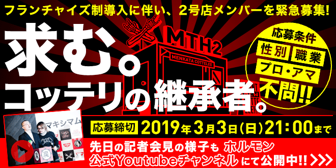 来週25日より、マキシマム ザ ホルモン2号店となるメンバーの募集を開始致します。