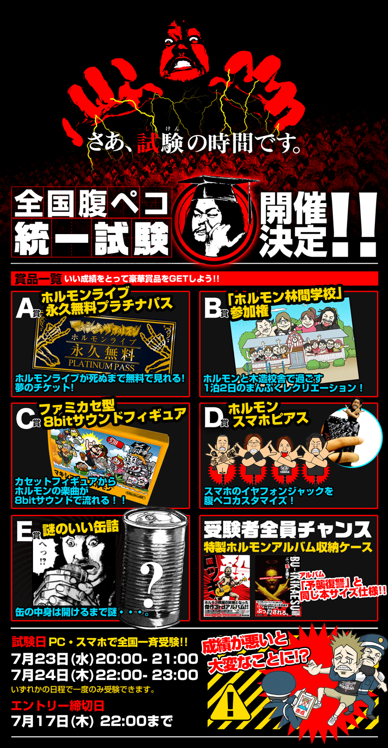 先日、ホルモン公式サイトにて行われた異例の企画「全国腹ペコ統一試験」。