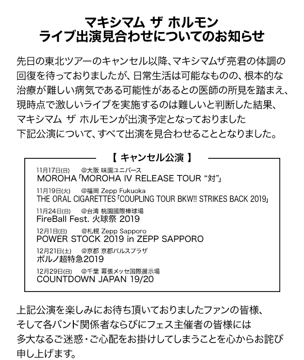 ライブ出演見合わせについてのお知らせ