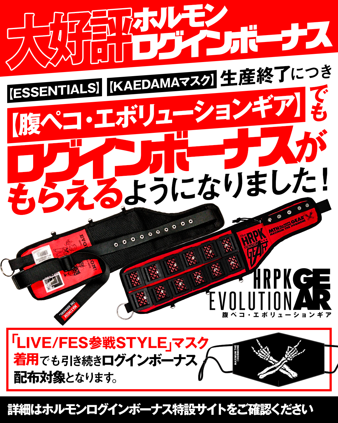 『腹ペコ・エボリューションギア』着用でもログインボーナスの配布対象に!