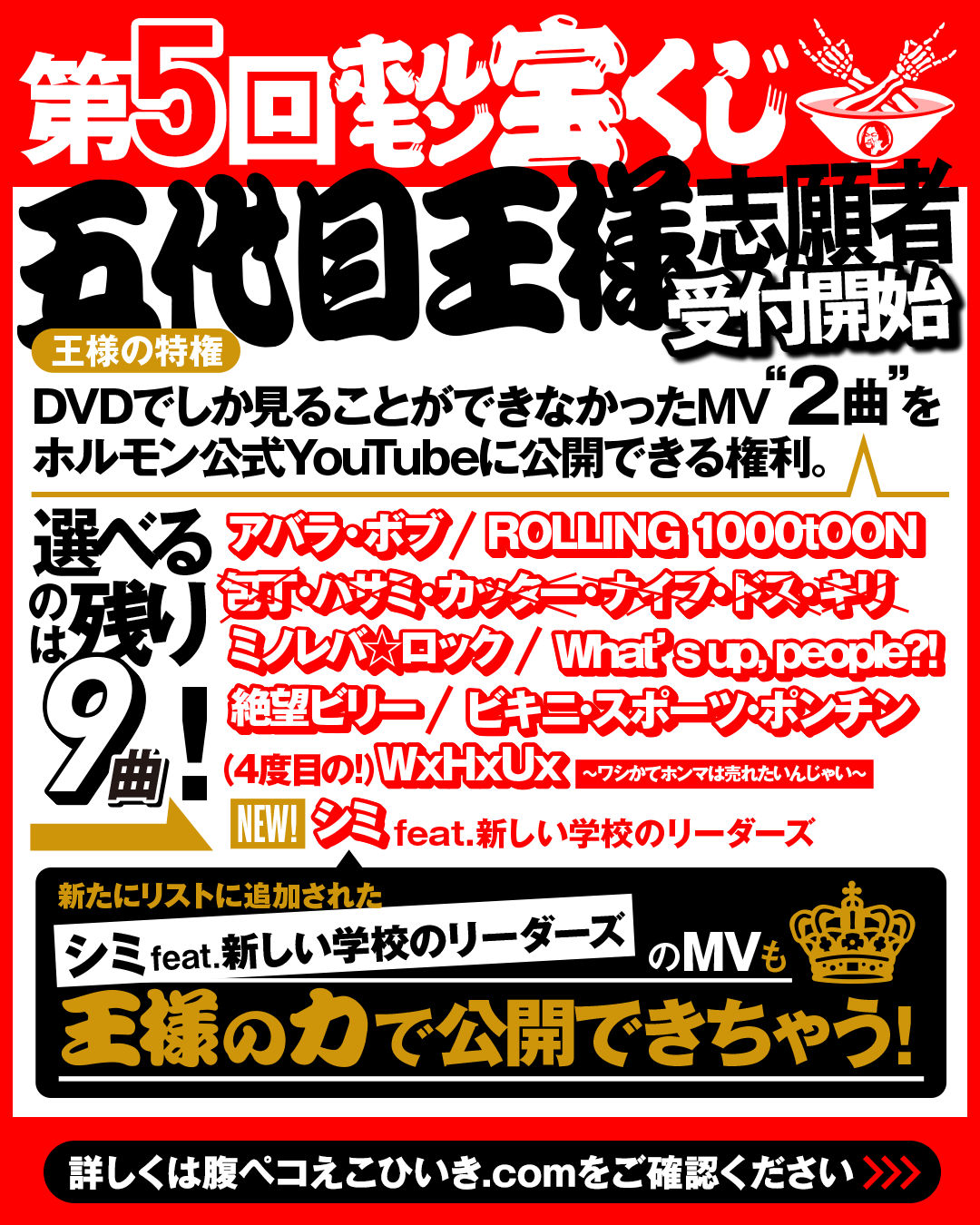 五代目王様が選んだMVはホルモン公式YouTubeからご覧いただけます。