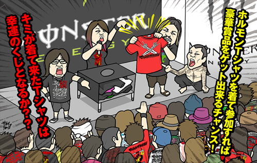 抽選で選ばれたデザインのホルモンT着用者はステージ上にあがって様々な