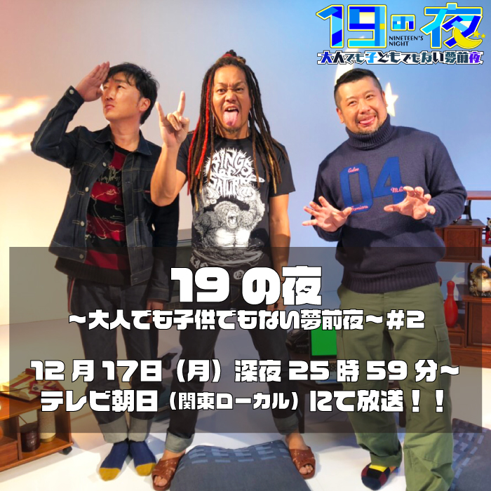 12/17(月)深夜25:59よりテレビ朝日にて放送される特番“19の夜~大人でも子供でもない夢前夜~”にマキシマムザ亮君がゲストとして出演します。