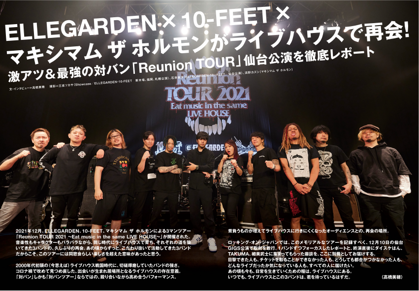 12/28(火)発売の雑誌“ROCKIN'ON JAPAN 2月号”に36ページにわたる別冊として、ELLEGARDEN、10-FEETと共に周った #ReunionTour の仙台公演ライブレポが掲載されます!