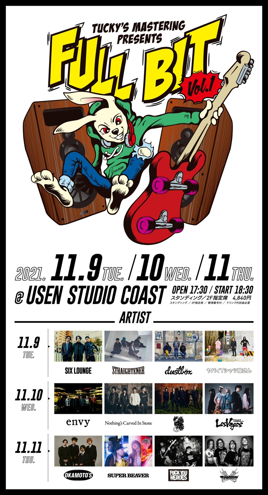 11/11(木)に、新木場・USEN STUDIO COASTにて行われる“Tucky's Mastering Presents -FULL BIT Vol.1-”に、ホルモンの出演が決定いたしました!