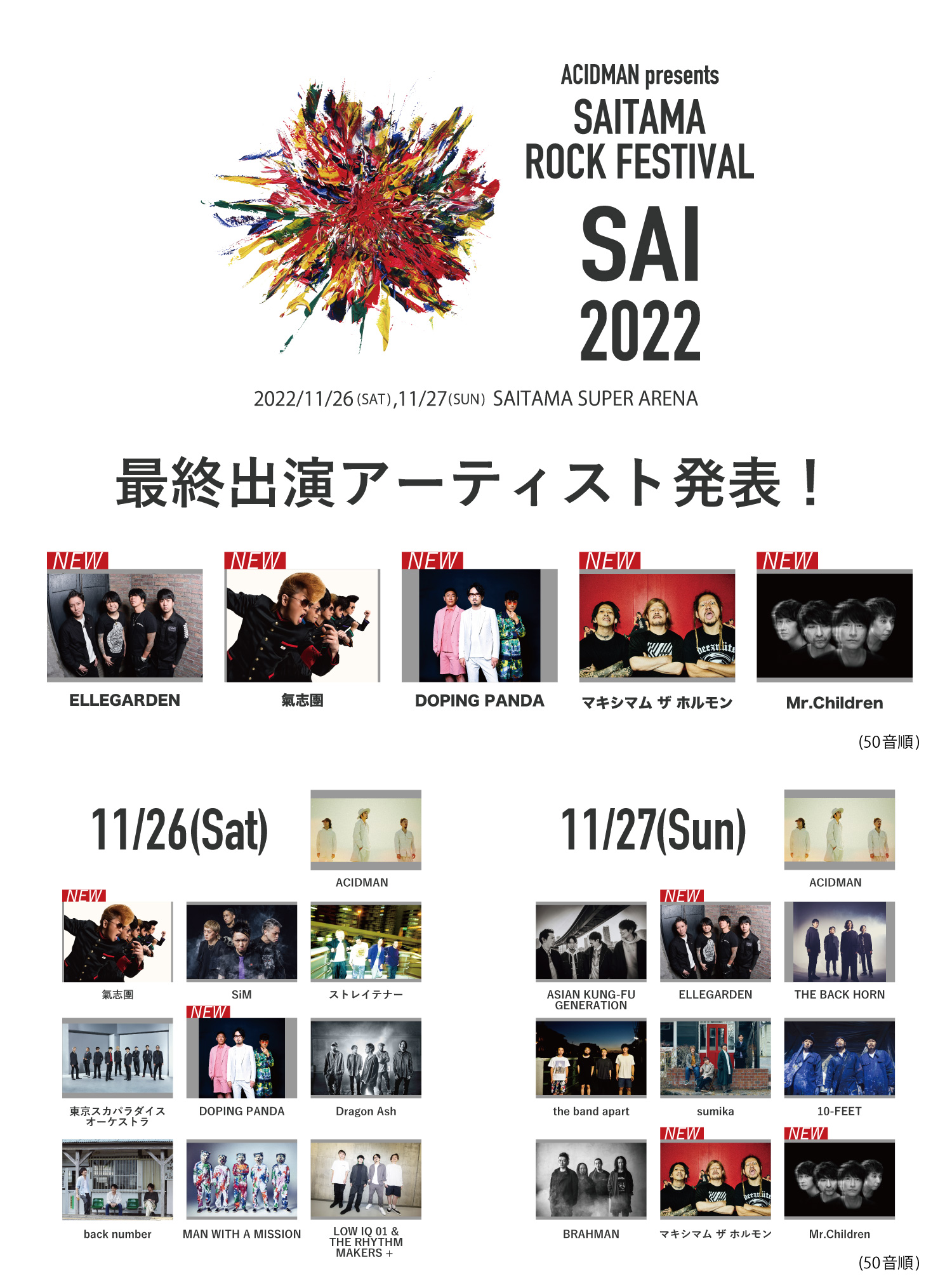 ACIDMAN主催“SAITAMA ROCK FESTIVAL 2022"通称「SAI 2022」にホルモンの出演が決定しました!