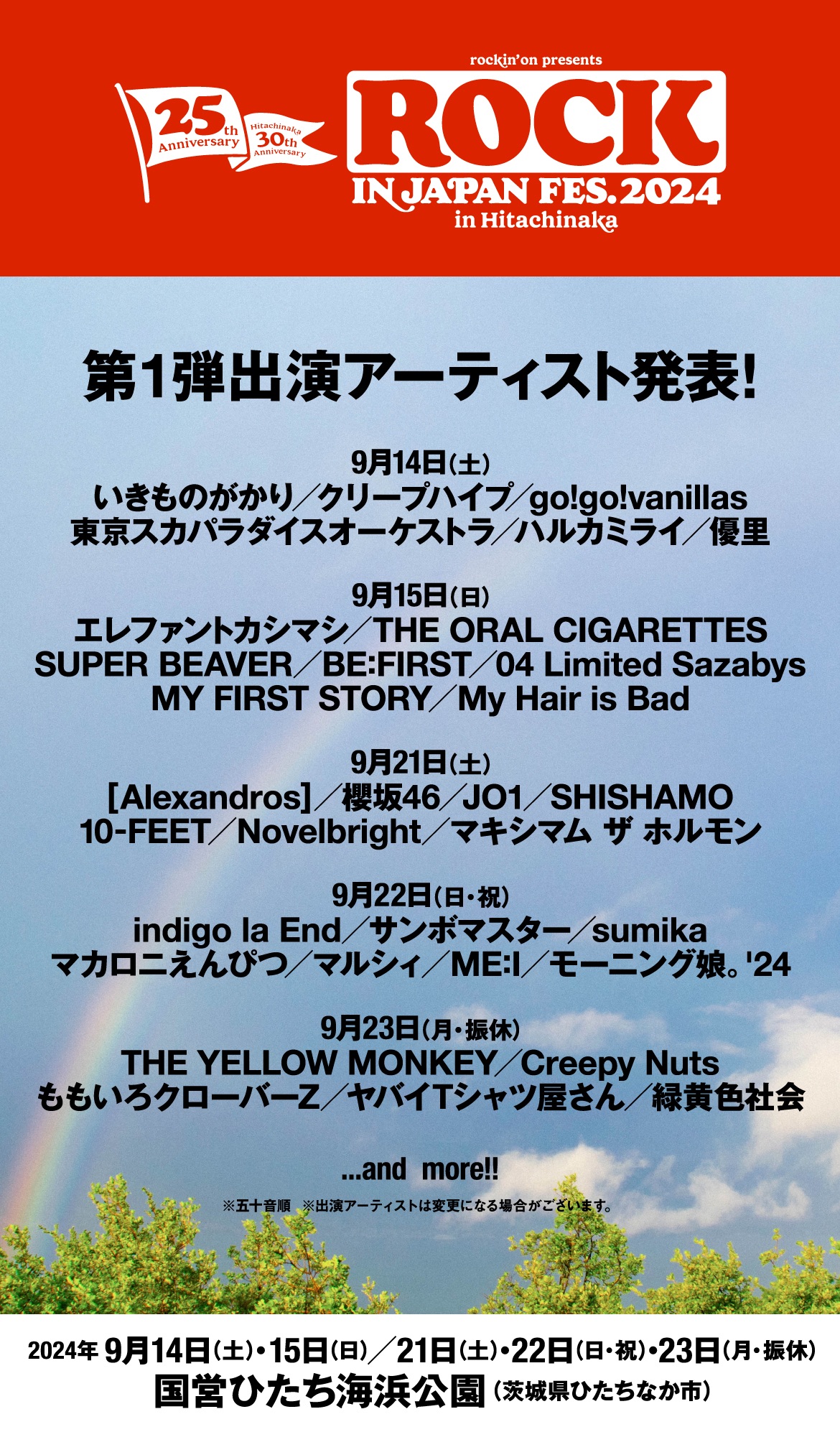 “ROCK IN JAPAN FESTIVAL 2024 in HITACHINAKA”にホルモンが出演決定!