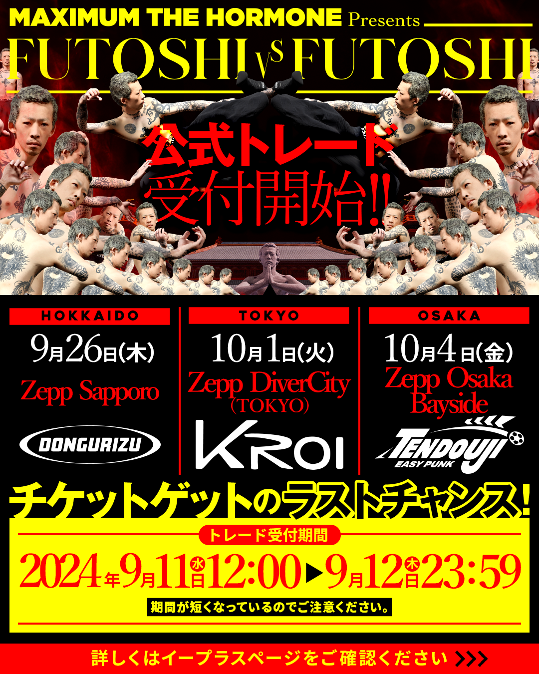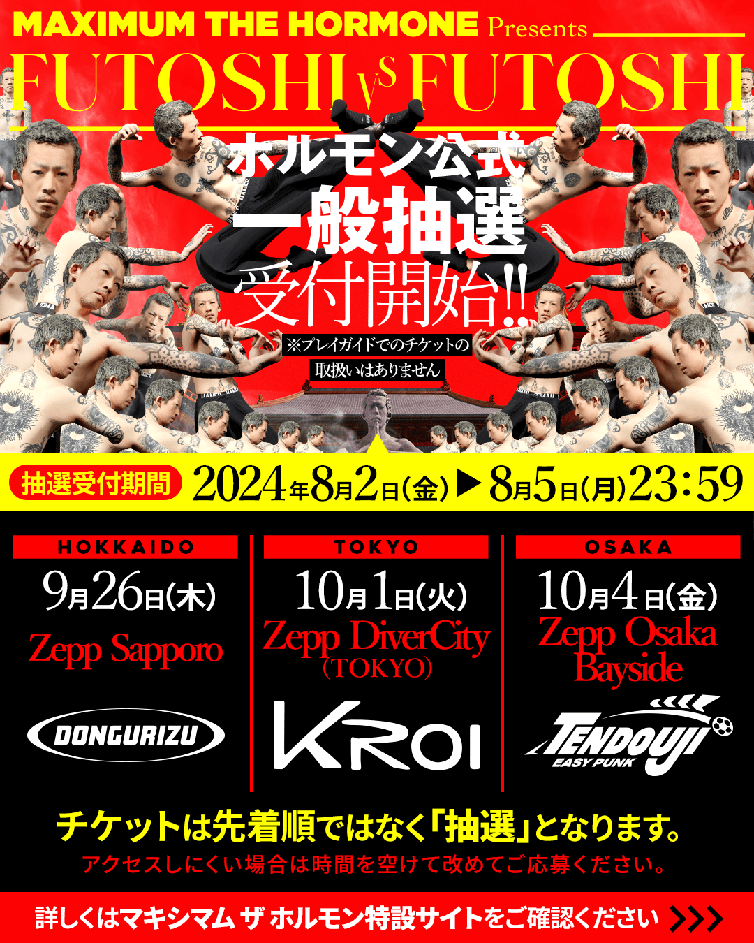 ホルモン主催ライブ“太vs太”のチケット一般抽選受付が只今より開始!