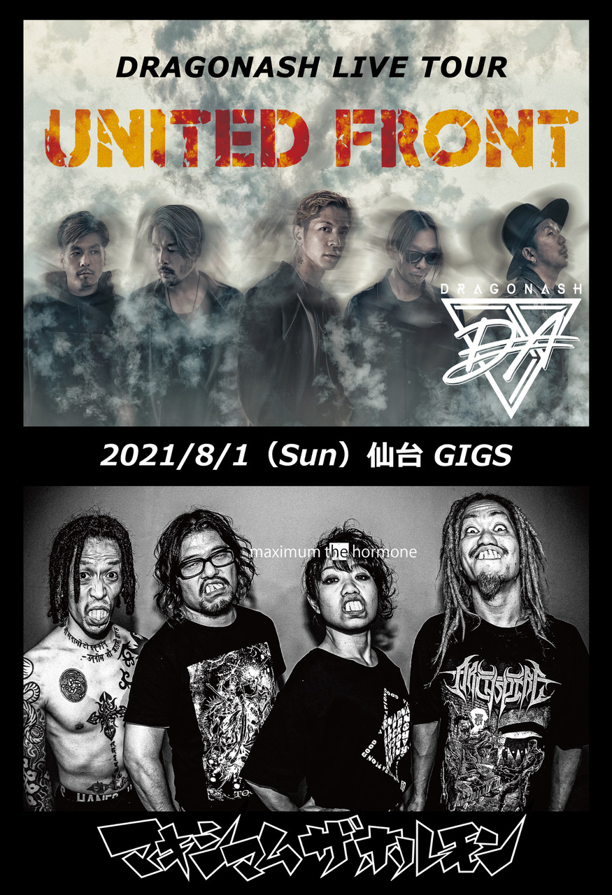 8/1(日)に仙台GIGSにて行われるDRAGONASH LIVE TOUR 「UNITED FRONT 2021」に、ホルモンの出演が決定!