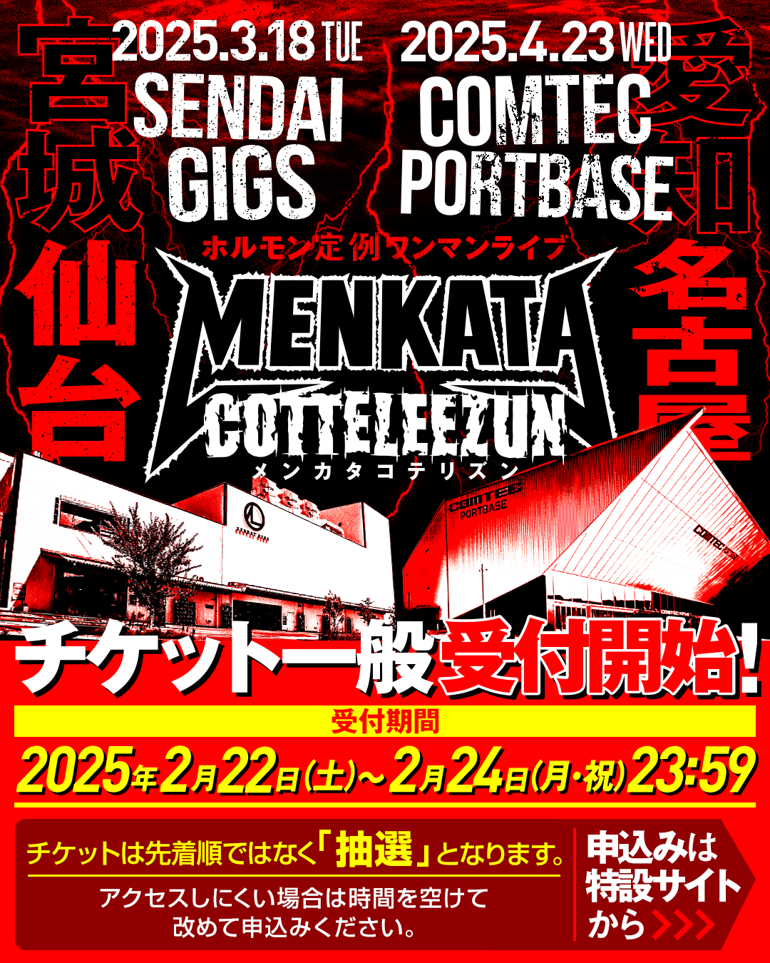 ホルモン定例ワンマンライブ『メンカタコテリズン』仙台・名古屋公演のチケット一般抽選受付が只今より開始!