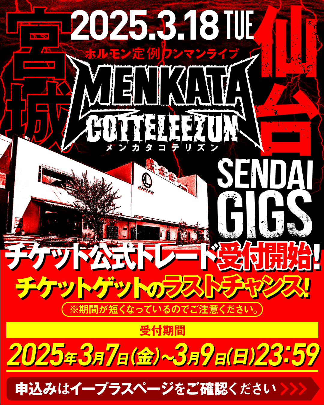 ホルモン定例ワンマンライブ『メンカタコテリズン』仙台公演のチケット公式トレード受付が只今より開始!