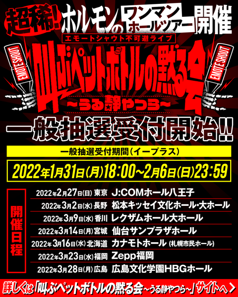 ホルモンワンマンホールツアー「叫ぶペットボトルの黙る会〜うる静やつら〜」チケット公式トレード受付開始!