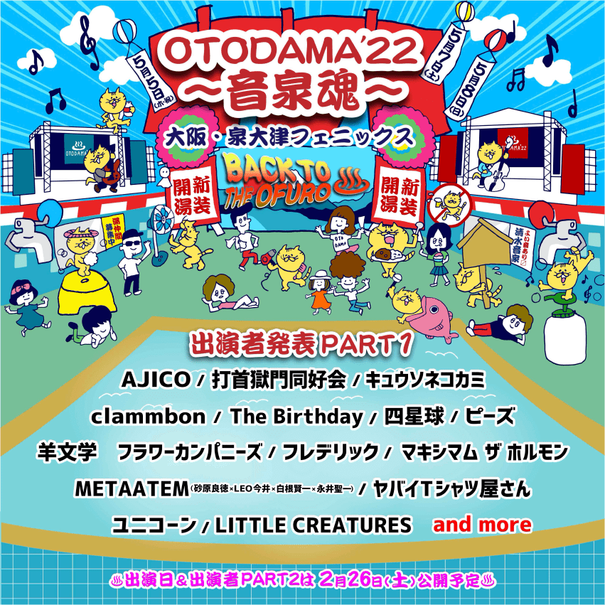 詳細は“OTODAMA’22〜音泉魂〜『BACK TO THE OFURO』”公式サイトをご確認ください。