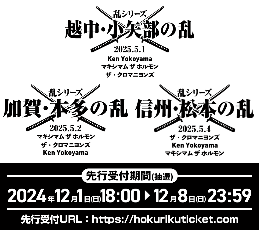 キョードー北陸主催「乱」シリーズが開催決定!