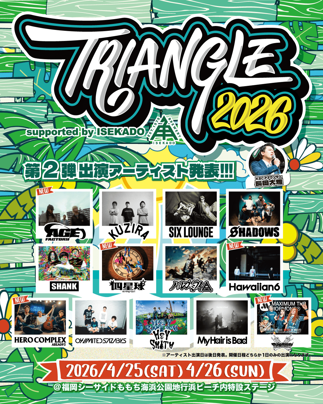 2026年4月25日(土)、26日(日)に福岡県・シーサイドももち海浜公園地行浜ビーチ内特設ステージにて開催される“TRIANGLE 2026”にホルモンが出演決定!