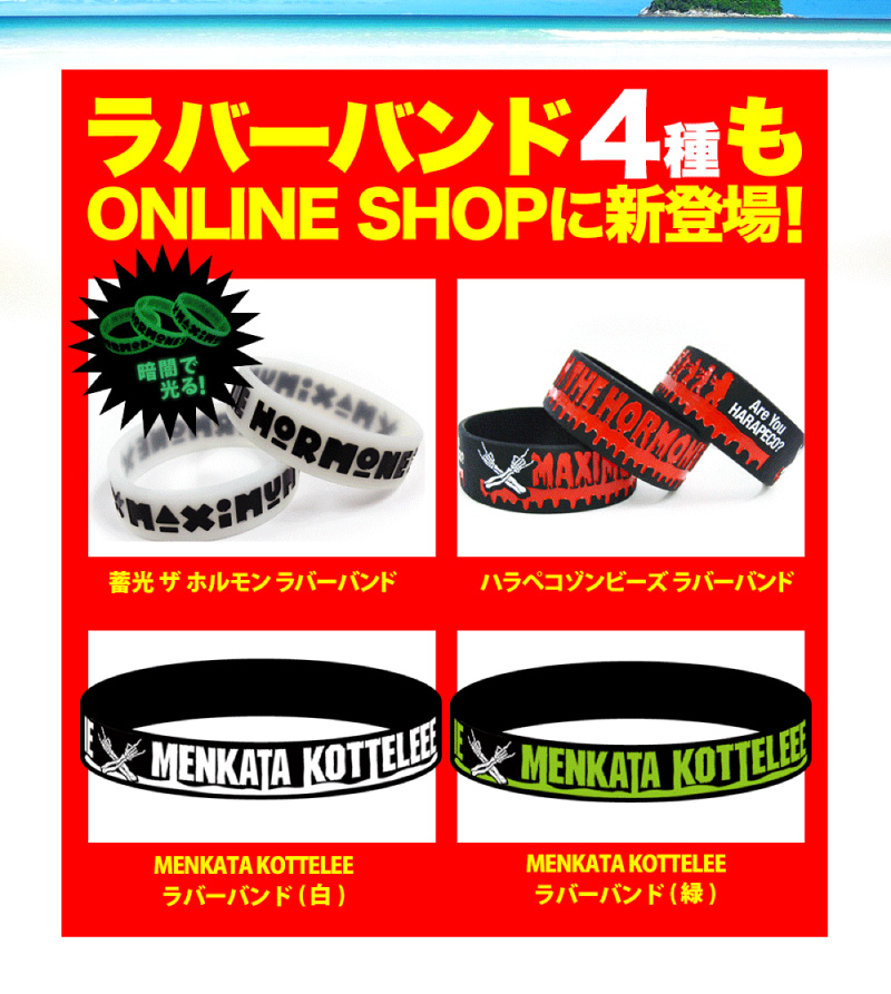 ONLINE SHOP商品入荷!“ホルモン夏GOODS”3アイテムとラバーバンド4種が新登場!