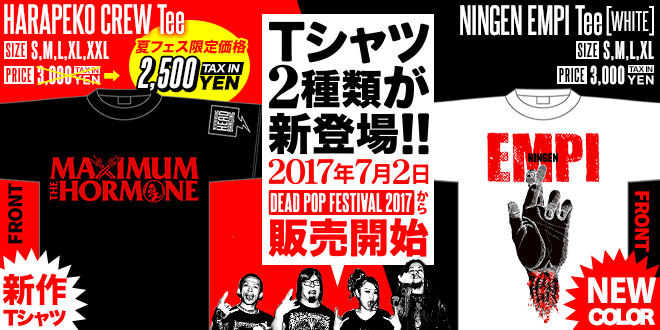 上記の新Tシャツは7月2日DEAD POP FESTIVALより販売開始です。