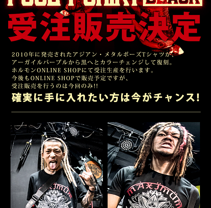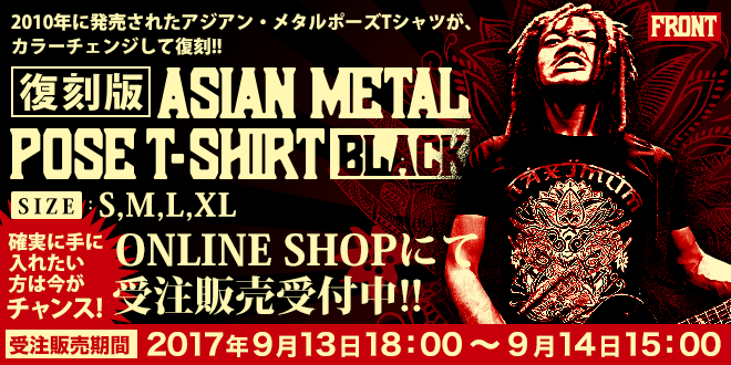 “アジアン・メタルポーズTシャツ”の初回受注販売を行ないます。