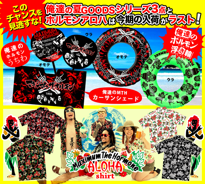 俺達の夏GOODSシリーズ3点とホルモンアロハに関しては今後の再入荷は予定しておりませんので、