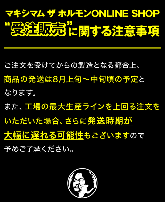 お買い求めは下記 "受注販売に関する注意事項" をご確認の上、「注意事項に同意して商品を購入する」ボタンからホルモンONLINE SHOPへ