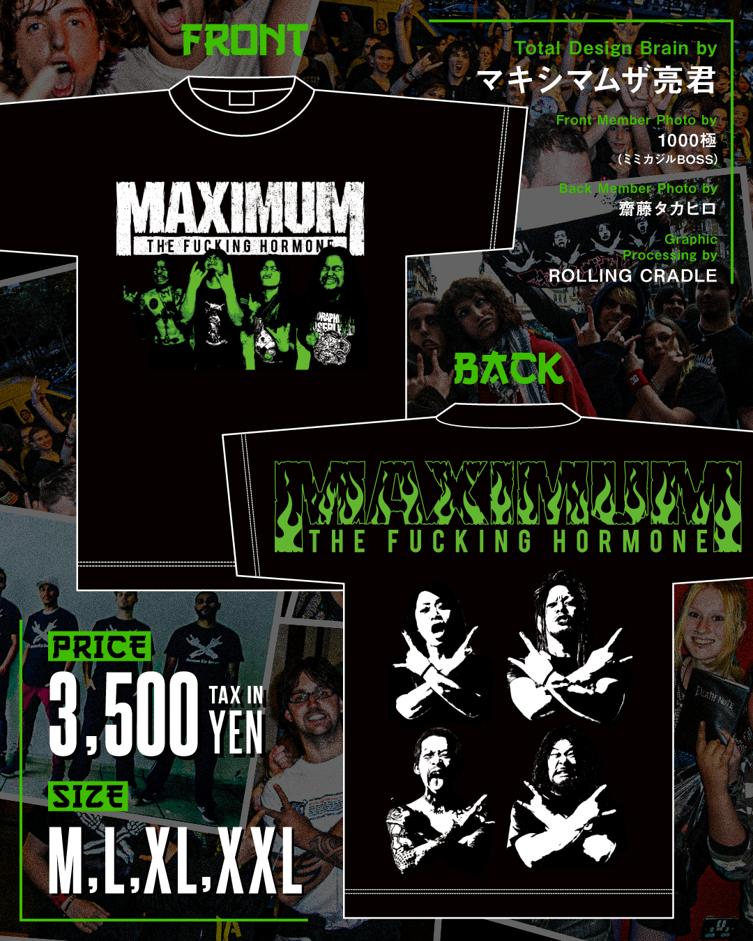 背中いっぱいにメタルポーズのメンバーをあしらい、腹ペコアピール全開の正真正銘の公式Tシャツです!