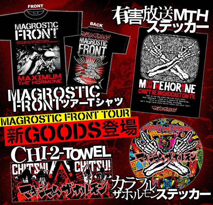 1月のツアー“MAGROSTIC FRONT~kin to gin no tsutsumi ni haitta shikakui tuna no yatsu saikin tabeteru?~”より、ツアー限定Tシャツ、タオルやステッカーなど合計4種類の新作GOODSが登場!