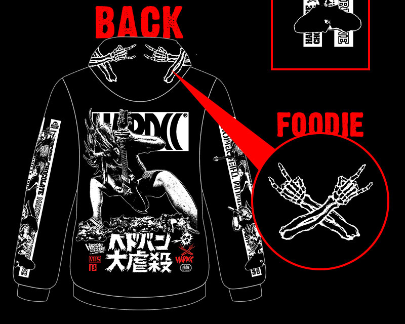 先日お知らせした“ホルモン×コアチョコ「ヘドバン大虐殺」コラボパーカー”ですが、