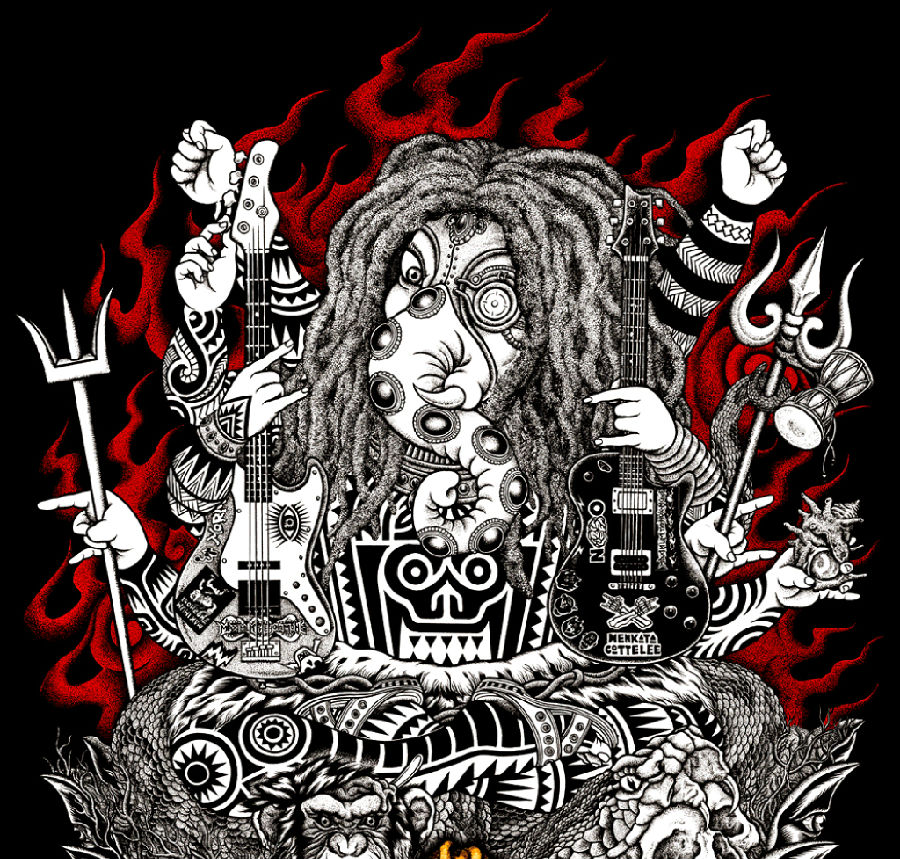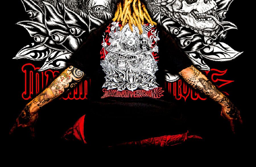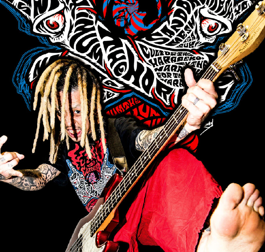 “STINKY”氏の描くサイケロックフォントデザイン、バックは毒髑髏Tシャツでもお馴染みのイラストレーター