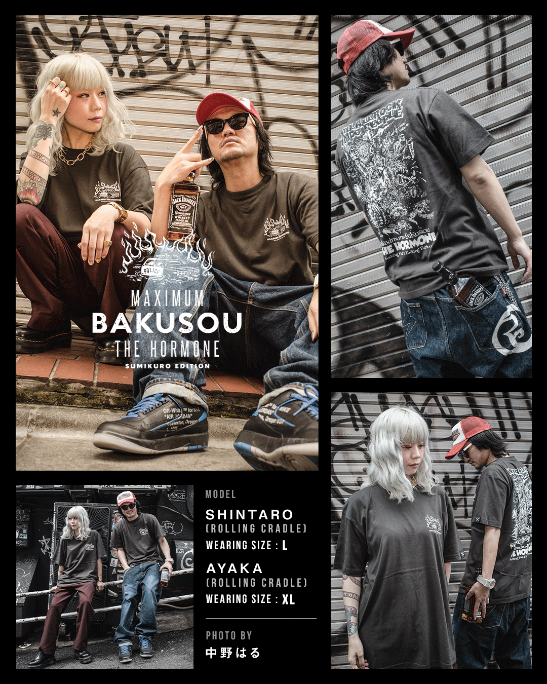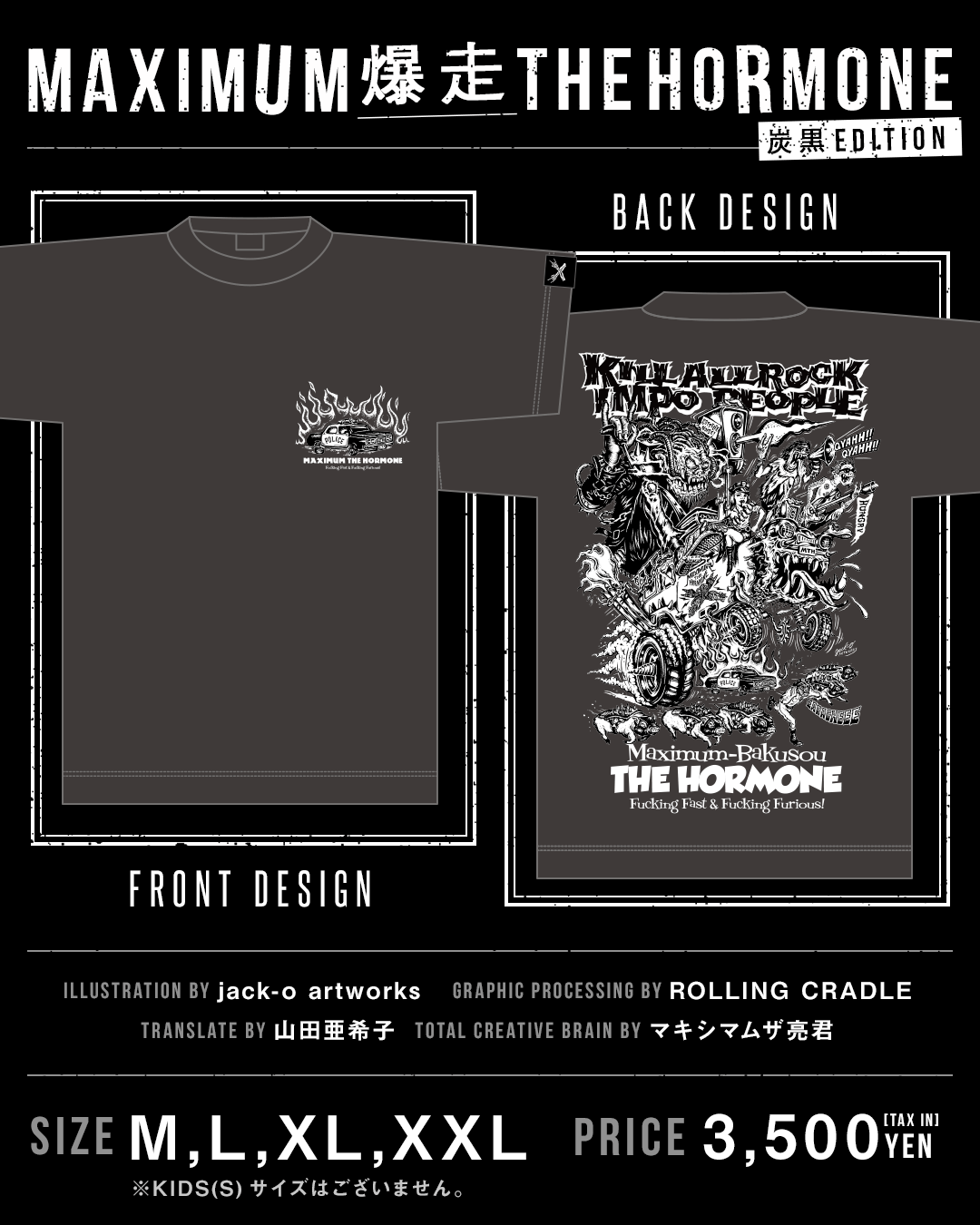 "MAXIMUM 爆走 THE HORMONE T-SHIRTS"のデザインが落とし込まれた