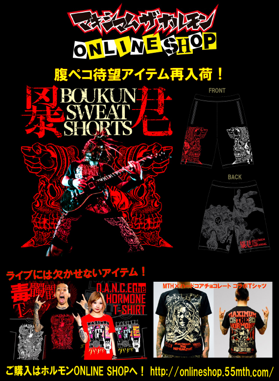 ライブには欠かせないアイテム“毒髑髏Tシャツ”や“MTH×ハードコアチョコレート コラボTシャツ”なども