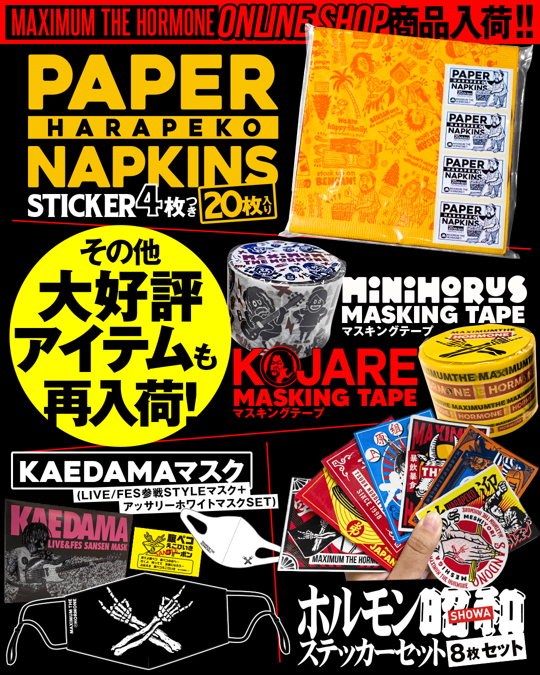 ライブ会場でのみ販売されたマスキングテープと昭和ステッカーセットもONLINE SHOPで正式販売開始!
