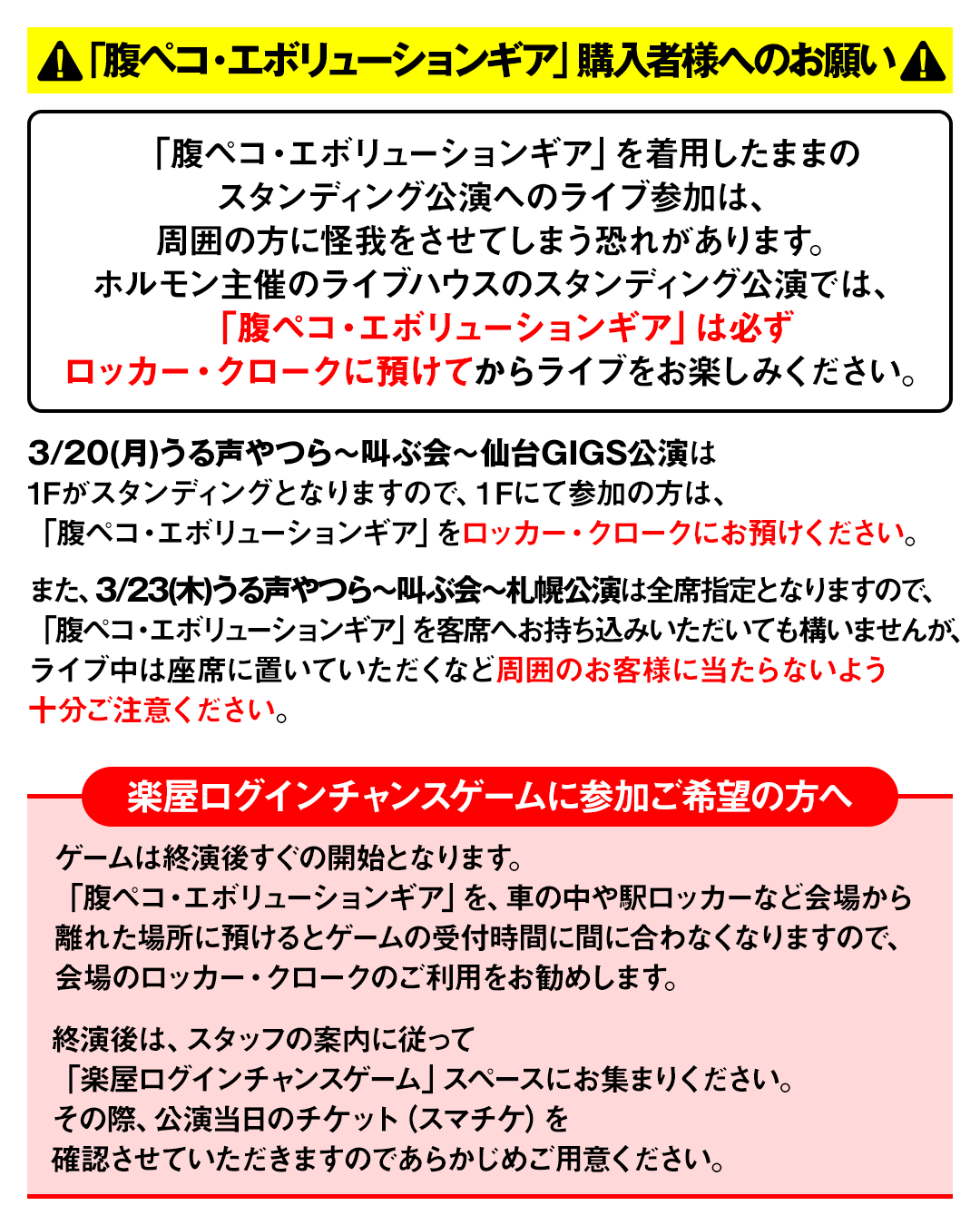 および「腹ペコ・エボリューションギア」購入者様へのお願い。
