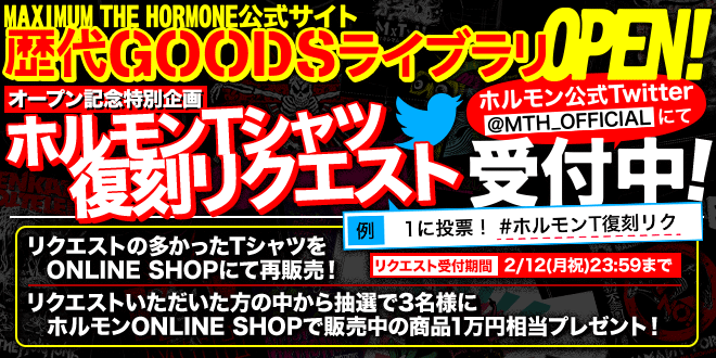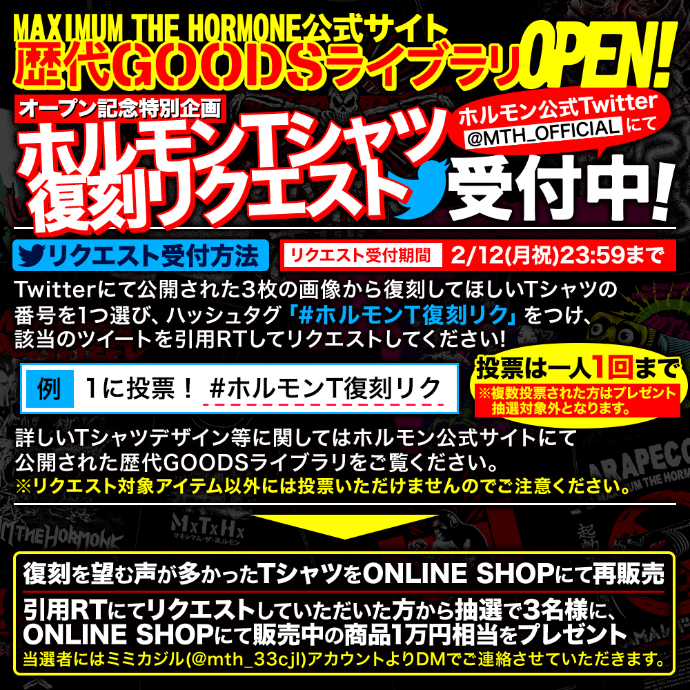 また、2月12日(月)に締切りましたTwitterキャンペーン“ #ホルモンT復刻リク は、ただ今集計中です!