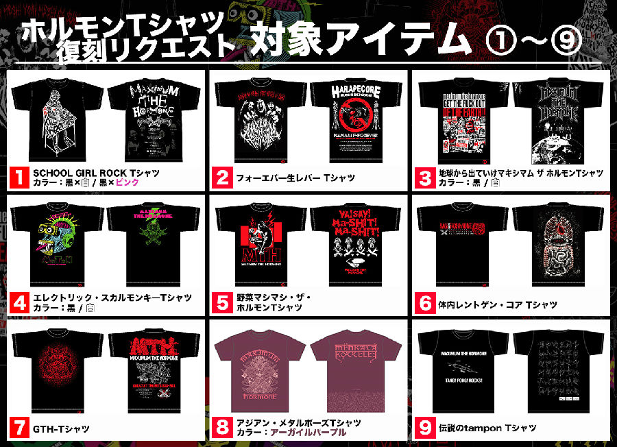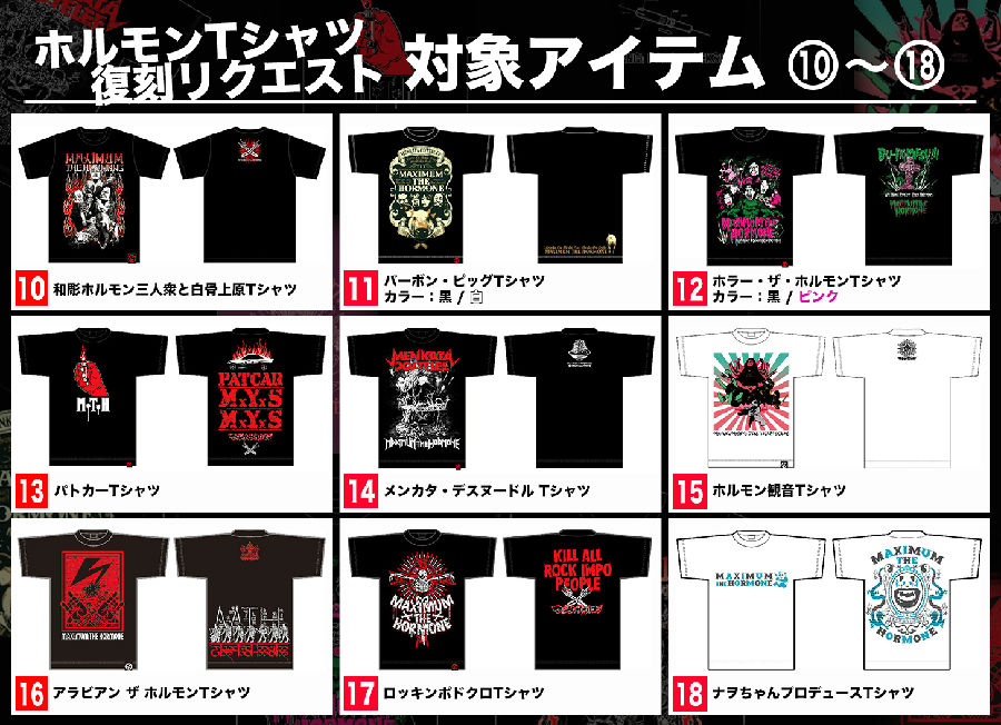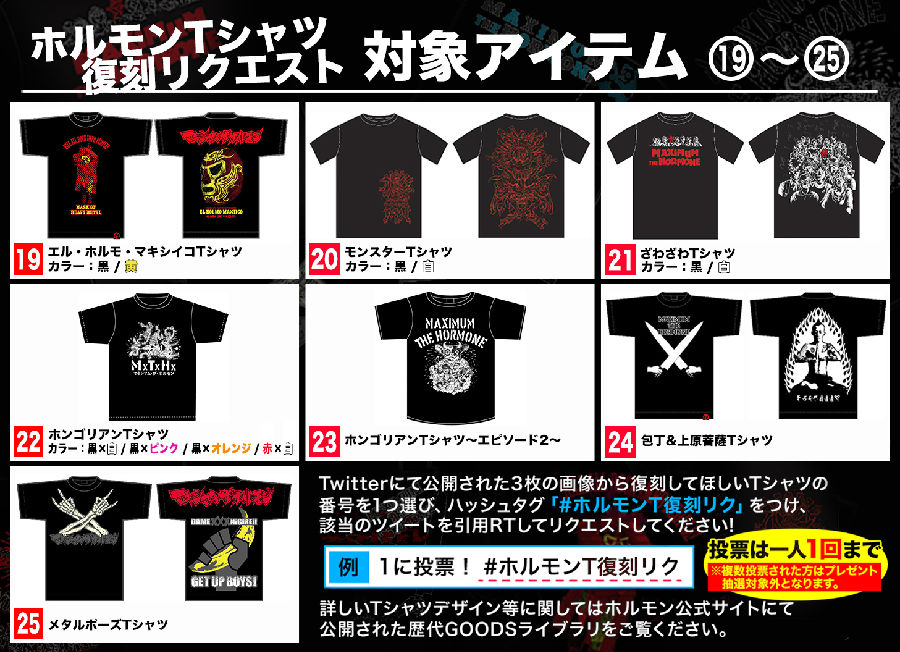 【#ホルモンT復刻リク】 と銘打ち、歴代ホルモンTシャツから復刻リクエストを受付け、復刻を望む声が多かったTシャツONLINE SHOPにて再販売いたします!