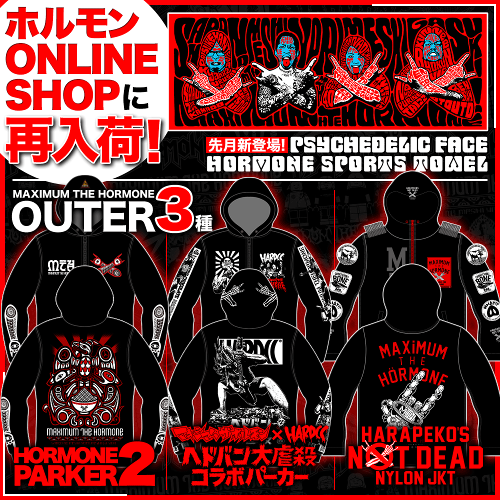 先月より新登場しました“サイケフェイスホルモンスポーツタオル”をはじめ、大人気の各種アウターも