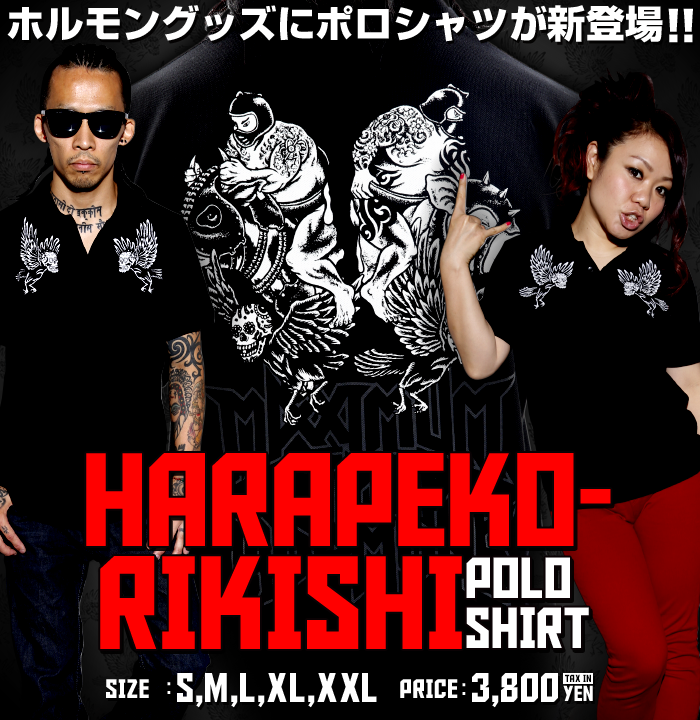 特に厳選したイラストを新たにレイアウトし直し、“HARAPEKO-RIKISHI POLO SHIRT”として