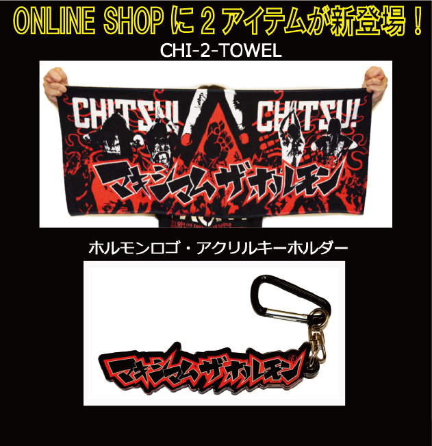 今回より“CHI-2-TOWEL”と“ホルモンロゴ・アクリルキーホルダー”がONLINE SHOPに新登場です!