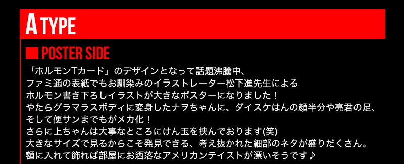 大きなポスターサイズとなって収録。どちらも部屋の壁に大きく貼って、部屋をホルモン色に