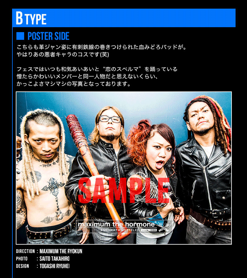 今回は、なんとホルモンメンバーが革ジャン姿に有刺鉄線バットを持った激渋写真!