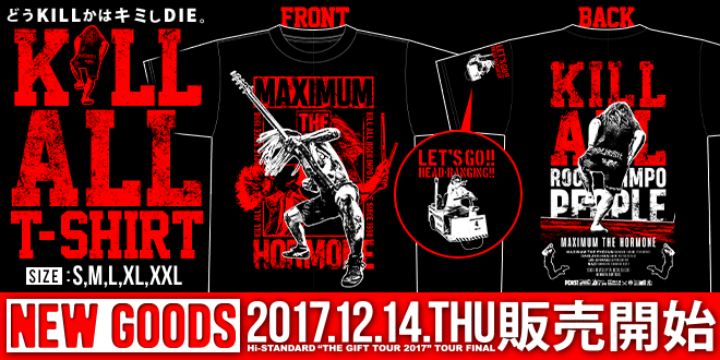 新たなデザインのTシャツ“KILL ALL T-shirt”と、ホルモン初のボディバッグ“MTHボディバッグ”を販売します!