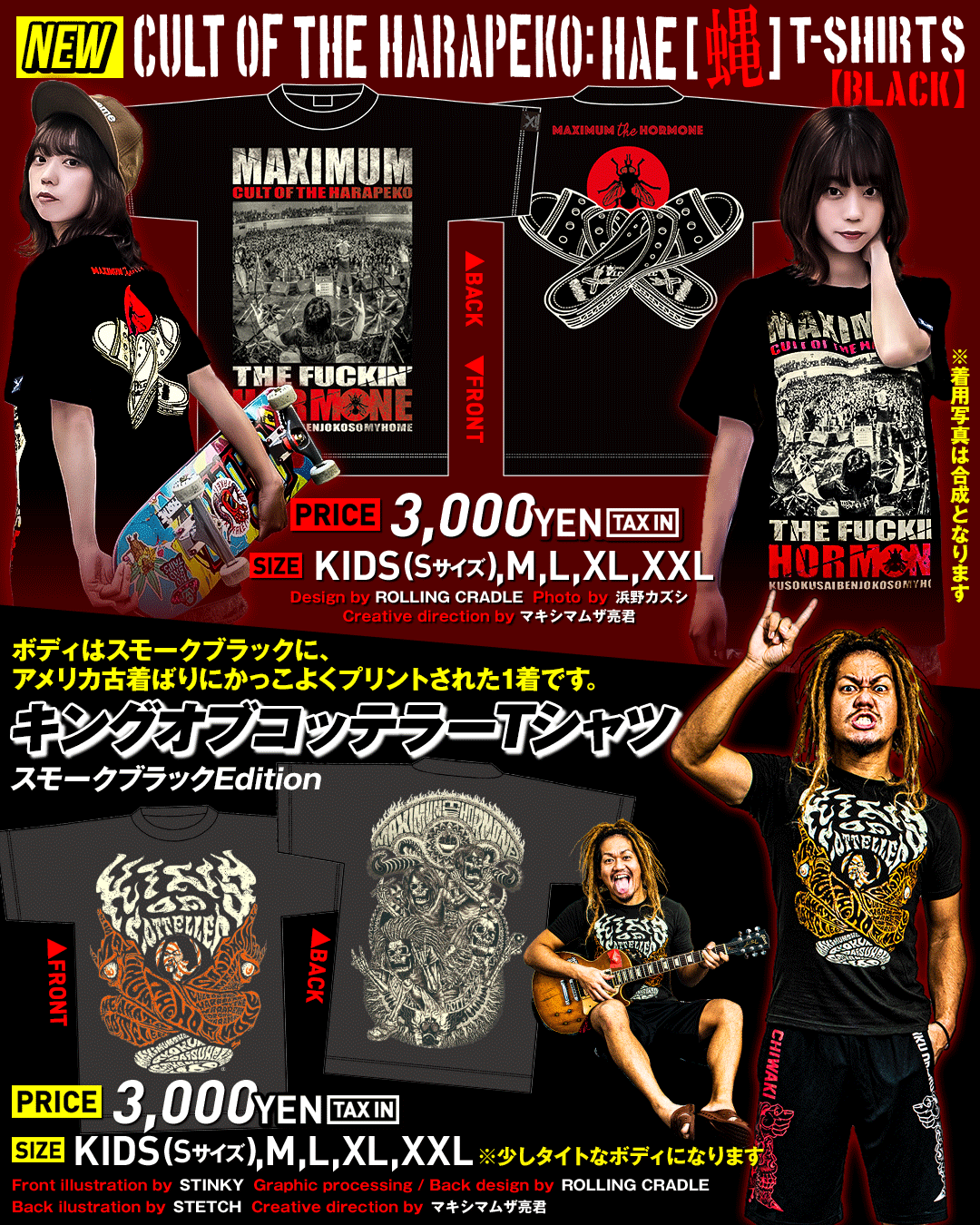 そして、“CULT OF HARAPEKO HAE[蝿]T-SHIRTS”に新色の黒が登場!